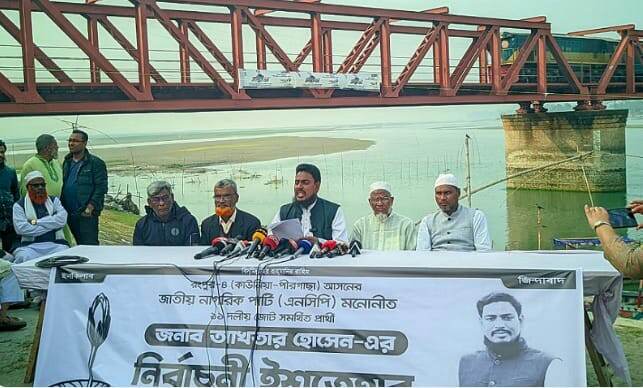 রিয়াজুল হক সাগর, রংপুর: তিস্তা নদী সুরক্ষা ও চরাঞ্চলের মানুষের জীবন মানোন্নয়নকে অগ্রাধিকার দিয়ে নির্বাচনি ইশতেহার প্রকাশ করেছেন রংপুর-৪ আসনে এগারো দলীয় জোটের প্রার্থী ও জাতীয় নাগরিক পার্টি-এনসিপি’র সদস্য সচিব আখতার হোসেন। শনিবার (৩১ জানুয়ারি) বিকেলে কাউনিয়া উপজেলার তিস্তা রেলসেতু এলাকায় আয়োজিত এক সংবাদ সম্মেলন থেকে নির্বাচনি ইশতেহার ঘোষণা দেন।