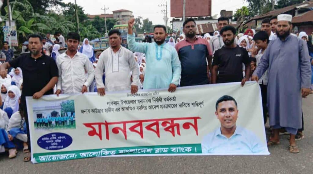 বক্তারা বলেন, ইউএনও কাউছার হামিদ লাকসামের উন্নয়ন ও জনগণের পাশে থেকে কাজ করে গেছেন। তাই ষড়যন্ত্রমূলক এ বদলি আদেশ অবিলম্বে প্রত্যাহার করা না হলে আরো কঠোর কর্মসূচি ঘোষণা করা হবে।