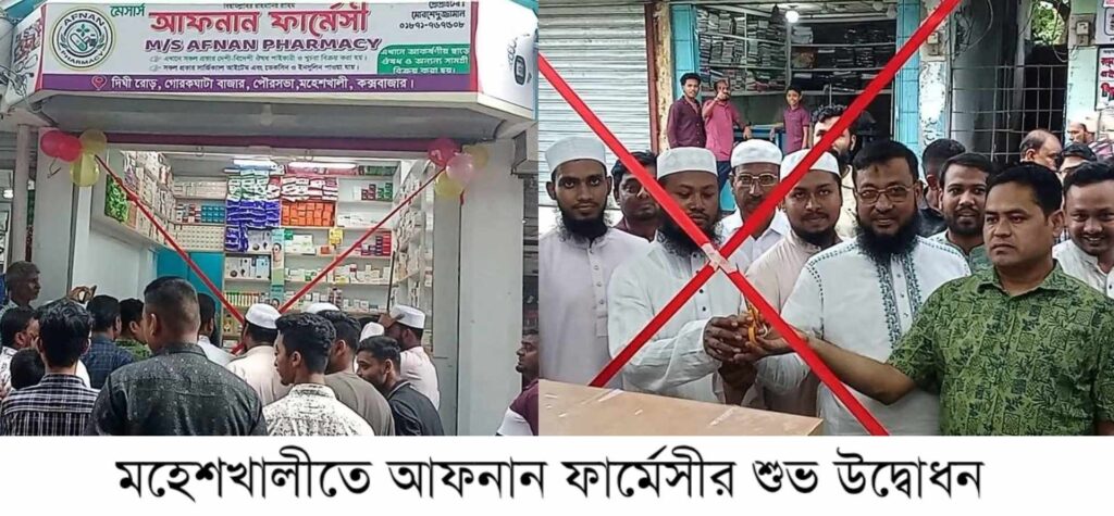 নুরুল করিম (মহেশখালী) প্রতিনিধি: মহেশখালী পৌরসভায় মেসার্স আফনান ফার্মেসী নামের একটি অত্যাধুনিক ঔষুধের দোকানে ফিতাকেটে শুভ উদ্বোধন অনুষ্ঠিত হয়েছে।