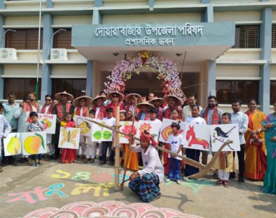 পহেলা বৈশাখে দোয়ারাবাজার উপজেলা প্রশাসনের আনন্দ শোভাযাত্রায় মানুষের ঢল