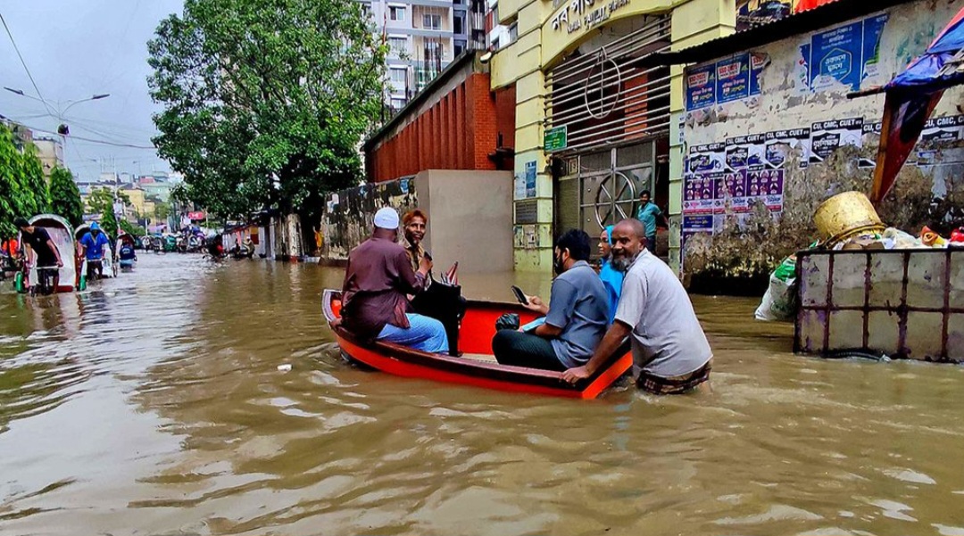 চট্টগ্রামে সড়কে নৌকা চলাচল, টানা বৃষ্টিতে নিম্নাঞ্চল প্লাবিত