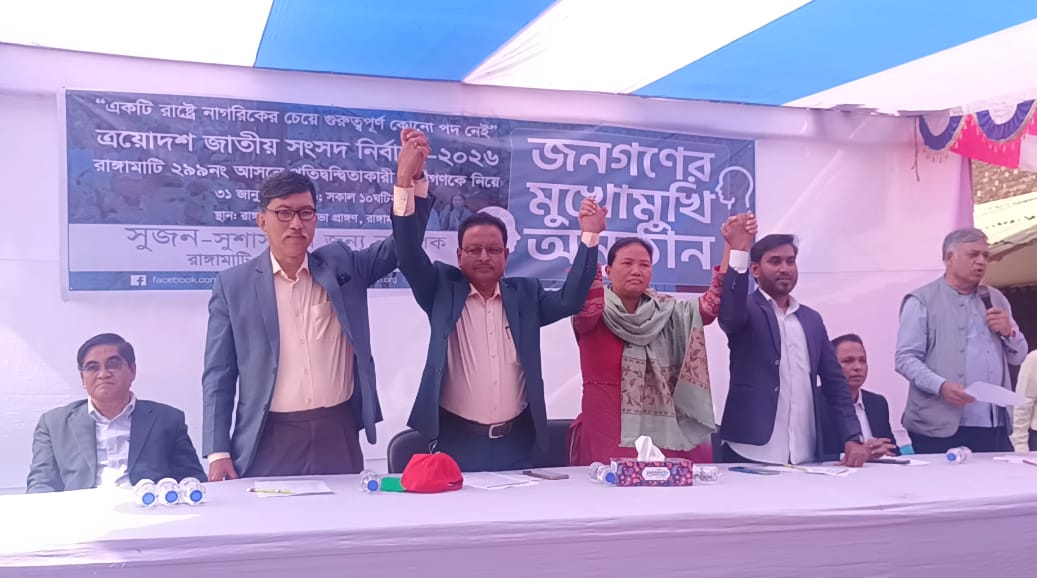 আহমদ বিলাল খান: ত্রয়োদশ জাতীয় সংসদ নির্বাচন উপলক্ষে রাঙামাটি-২৯৯ সংসদীয় আসনের প্রার্থীদের নিয়ে আয়োজিত জনগণের মুখোমুখি সভায় বক্তারা দৃঢ়ভাবে বলেছেন—নির্বাচনে যেই বিজয়ী হোন না কেন, দুর্নীতির বিরুদ্ধে সবাই একযোগে কাজ করবেন এবং