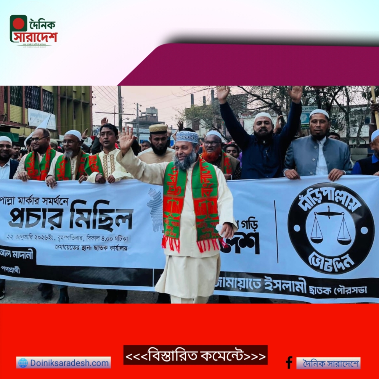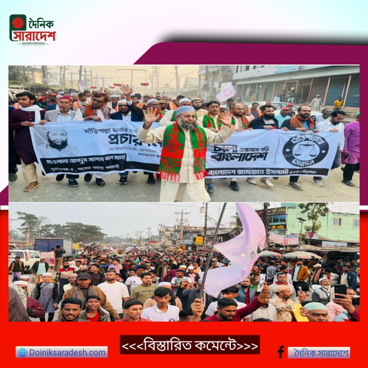১ যোগে ১১ ইউনিটে মিছিল: সুনামগঞ্জ-৫ আসনে জামায়াত প্রার্থী আব্দুস সালাম মাদানীর আনুষ্ঠানিক প্রচারণা শুরু