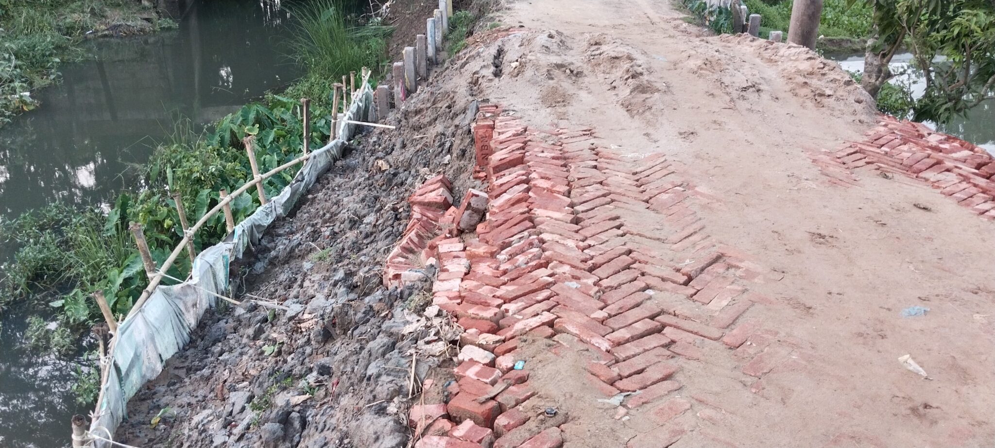 সুনামগঞ্জের দোয়ারাবাজারে নির্মাণ কাজ শেষ না হতেই ৪০ লক্ষ টাকার সংযোগ সড়কে ধস