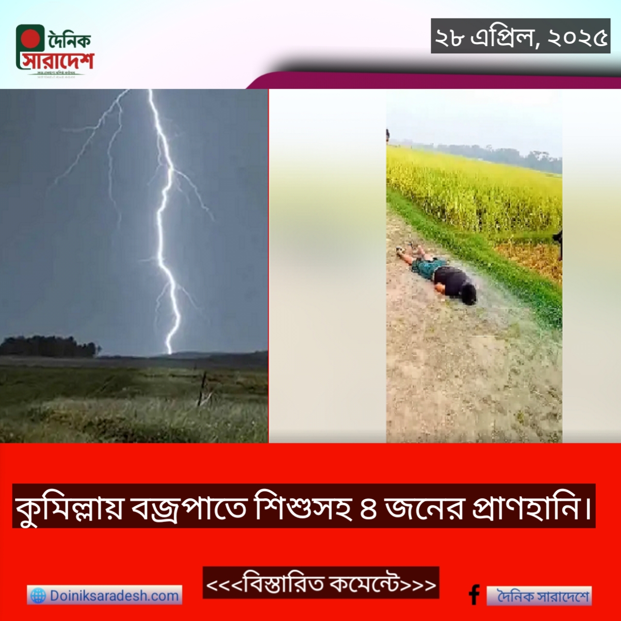 কুমিল্লায় বজ্রপাতে শিশুসহ ৪ জনের প্রাণহানি