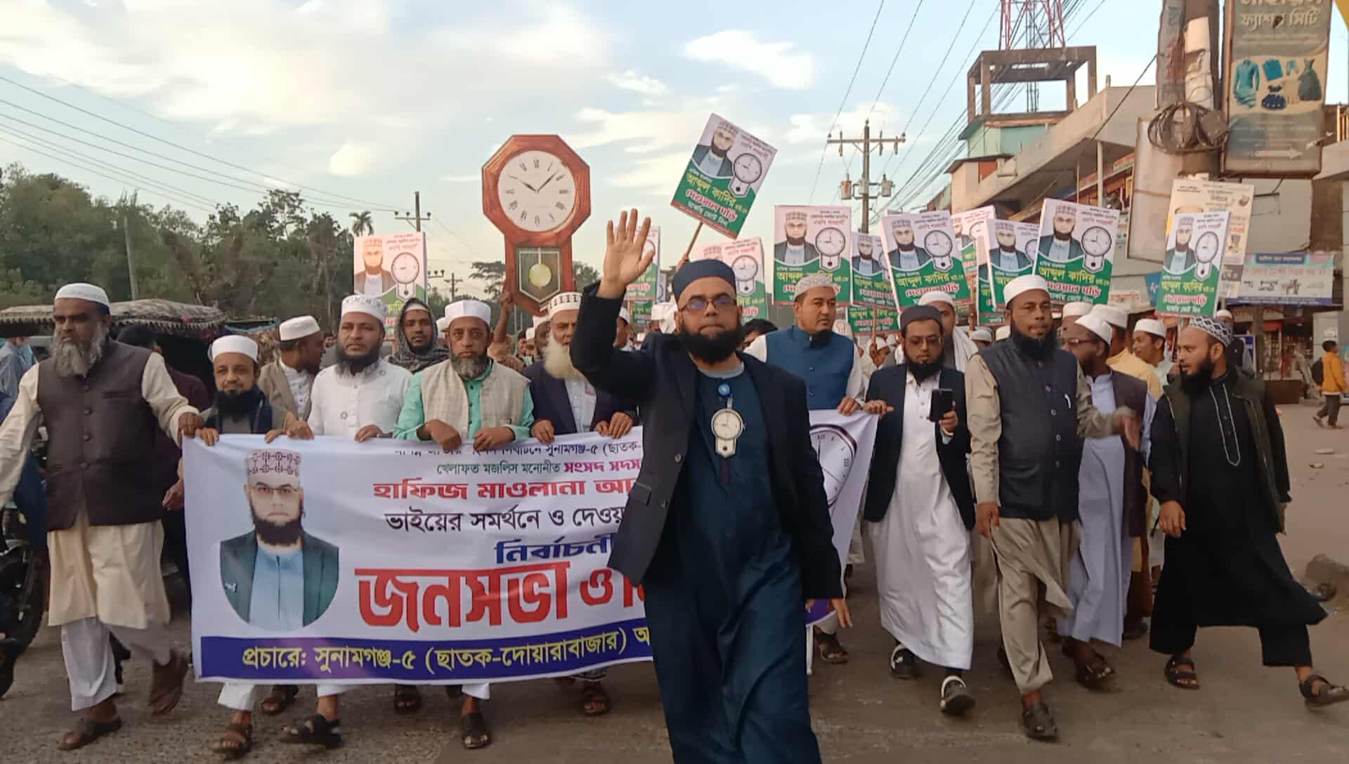 ওসমান হাদী ও বিএনপির নেতা এরশাদ উল্লার উপর সন্ত্রাসী হামলার প্রতিবাদে মাধবপুরে বিএনপির বিক্ষোভ মিছিল