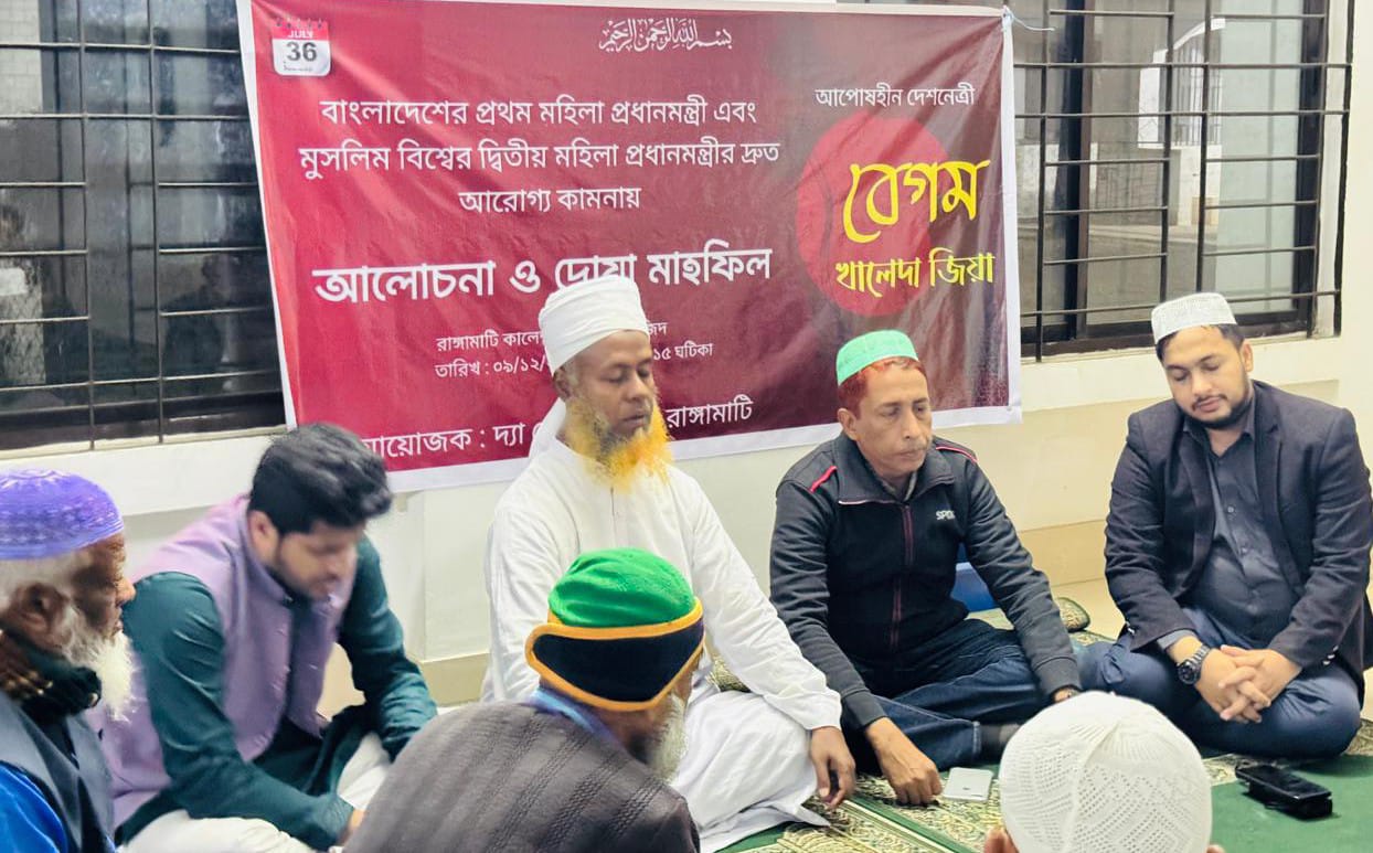 আহমদ বিলাল খান: দেশনেত্রীর বেগম খালেদা জিয়ার সুস্থতা কামনায় দেশবাসী সকলের দোয়া ও সহমর্মিতার জন্য কৃতজ্ঞতা প্রকাশ এবং ভবিষ্যতেও মানবিক ও সামাজিক উদ্যোগ অব্যাহত রাখার প্রত্যয় ব্যক্ত করেছে দ্যা রেড জুলাই রাঙ্গামাটি