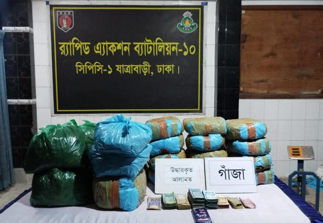 বিজয় চৌধুরী (বিশেষ প্রতিনিধি): রাজধানীর ডেমরা থানাধীন বামৈল এলাকায় র‌্যাব-১০ এর একটি বিশেষ অভিযানে উদ্ধার হয়েছে বিপুল পরিমাণ গাঁজা। অভিযানে গ্রেফতার হয়েছেন একজন পেশাদার নারী মাদক ব্যবসায়ী, যার কাছ থেকে উদ্ধার হয়েছে