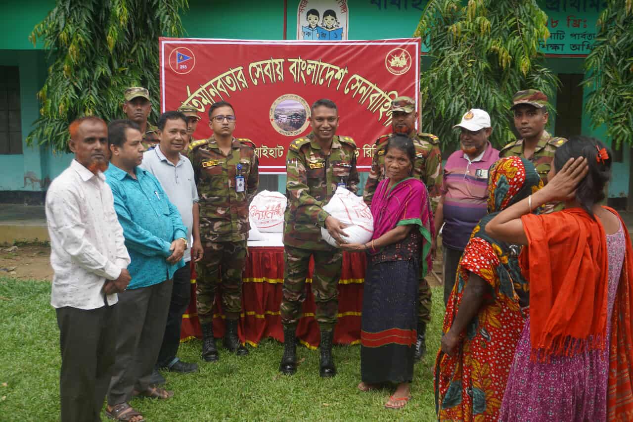সাজেকে বন্যা কবলিতদের মাঝে ত্রান সামগ্রী  বিতরণ করেছে সেনাবাহিনীর বাঘাইহাট জোন