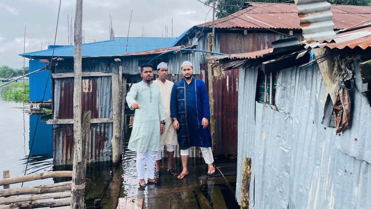 রাঙ্গামাটি শহরের পানিবন্দি এলাকা পরিদর্শন করেন জেলা পরিষদের সদস্য হাবীব আজম