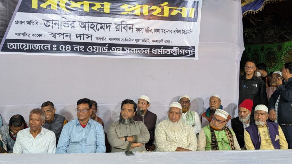 বিশেষ প্রার্থনায় সভাপতিত্ব করবেন মহানগর সার্বজনীন পূজা কমিটির কদমতলী থানার সভাপতি স্বপন দাস।এ ছাড়া উপস্থিত ছিলেন পঞ্চায়েতর বিভিন্ন পর্যায়ের নেতৃবৃন্দ।