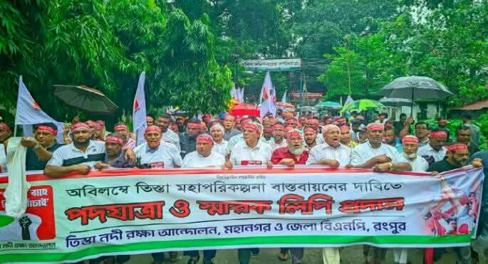রোববার (৫ অক্টোবর) দুপুরে ভারী বৃষ্টিকে উপেক্ষা করে রংপুর নগরীর শিক্ষা অফিস চত্বরের কাছ থেকে একটি পদযাত্রা বের করা হয়। তিস্তা নদী রক্ষা আন্দোলনের প্রধান সমন্বয়কারী ও বিএনপির জাতীয় নির্বাহী কমিটির সাংগঠনিক সম্পাদক অধ্যক্ষ আসাদুল হাবিব দুলু এতে নেতৃত্ব দেন।