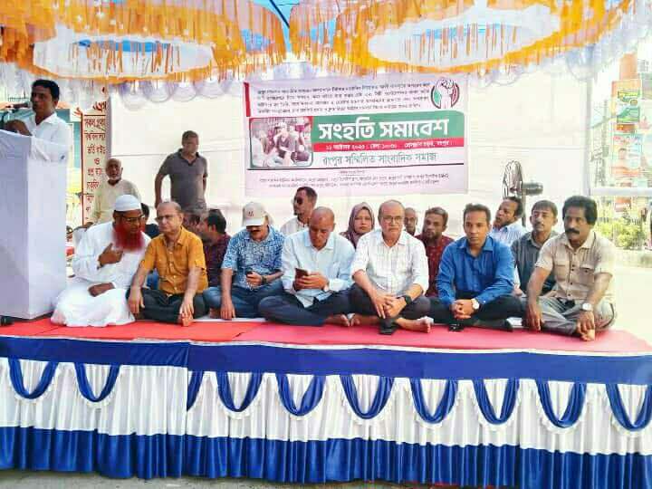 শনিবার (১১ অক্টোবর) দুপুরে রংপুর প্রেসক্লাবের সামনে অনুষ্ঠিত এ সমাবেশে সাংবাদিকদের ওপর হামলার সঙ্গে জড়িতদের দ্রুত গ্রেফতার, বিভাগীয় ব্যবস্থা গ্রহণ, চার্জশিট প্রদান ও বিচার কার্যক্রম দ্রুত শুরুর দাবি জানানো হয়।