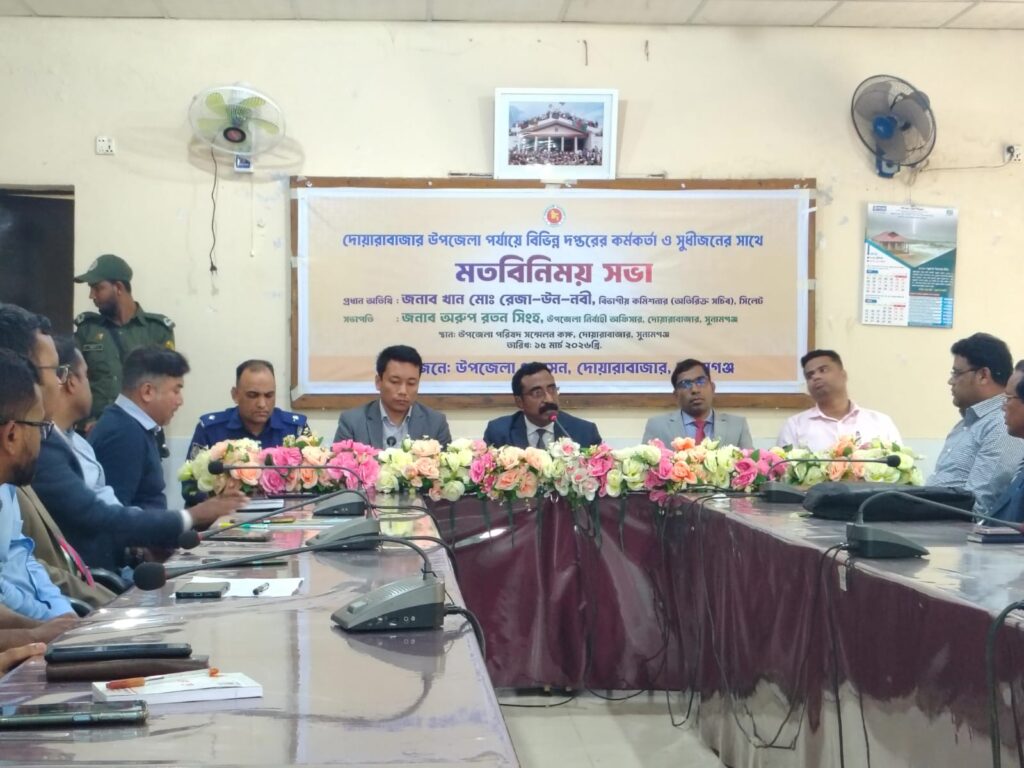 রোববার (১৫ মার্চ) দুপুরে দোয়ারাবাজার উপজেলা প্রশাসনের আয়োজনে উপজেলা পর্যায়ে বিভিন্ন দপ্তরের কর্মকর্তা ও সুধীজনের সাথে মতবিনিময় সভায় প্রধান অতিথি’র বক্তব্যে তিনি এসব কথা বলেন।