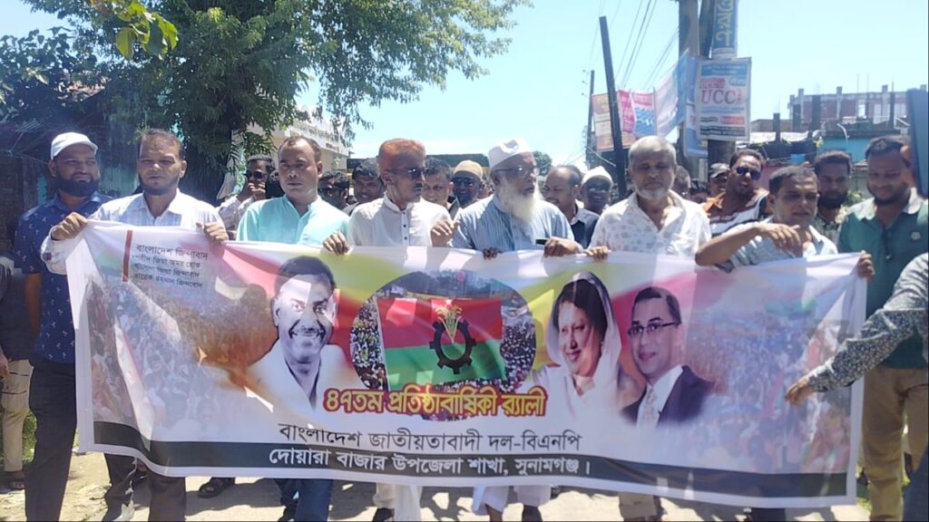 সোহেল মিয়া, দোয়ারাবাজার (সুনামগঞ্জ): বাংলাদেশ জাতীয়তাবাদী দল বিএনপি’র ৪৭তম প্রতিষ্ঠাবার্ষিকী উপলক্ষে সুনামগঞ্জের দোয়ারাবাজারে র্যালি ও পথসভা অনুষ্ঠিত হয়েছে।