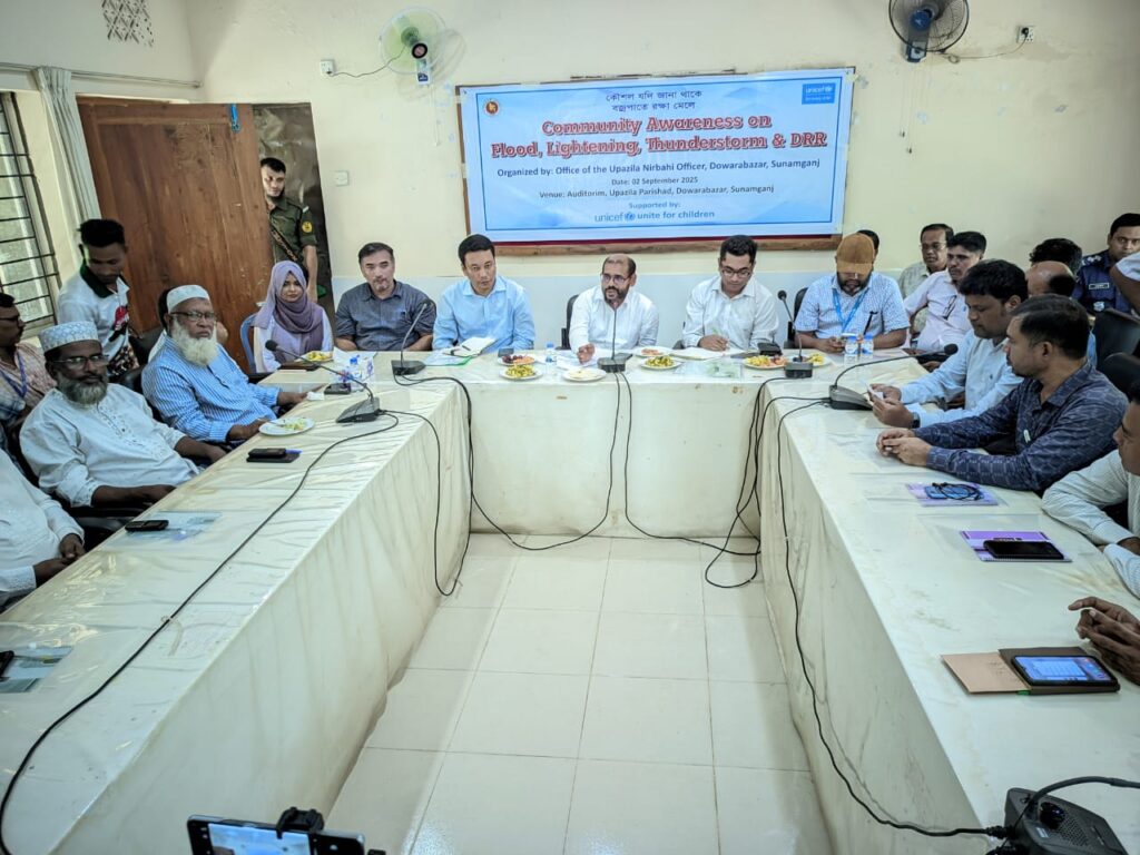 বন্যা, বজ্রপাত ও দুর্যোগ বিষয়ে জনসচেতনতা তৈরিতে দোয়ারাবাজারে unicefe এর কর্মশালা